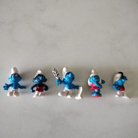 Smurffit muoviset figuurit. Kaksi keräily hahmoa.. Materiaali muovia.