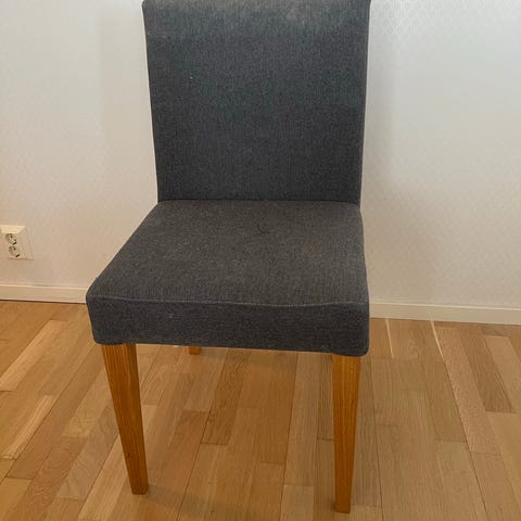 Puinen ruskea ruokapöydän tuoli, jossa on korkea säleikköselkänoja ja pehmustettu istuin. Istuimessa on tummanharmaa /musta kuviollinen kangasverhoilu. Tuoli soveltuu ruokapöydän ääreen tai muuhun sisäkäyttöön. Kaksi kappaletta.