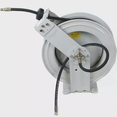 Korjaamoelämää nähnyt mutta toimiva kela. Letkua noin 10m.