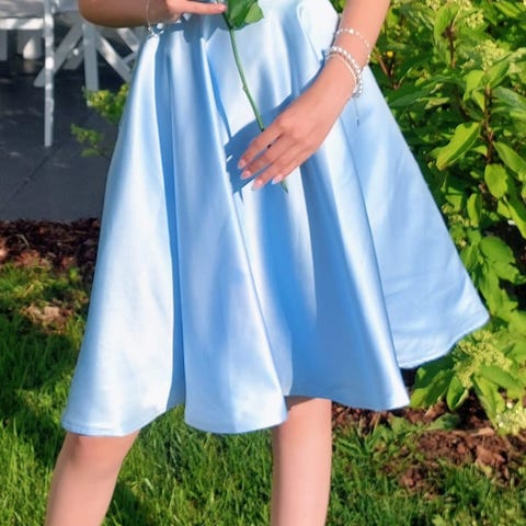mekko sininen satiini Xs