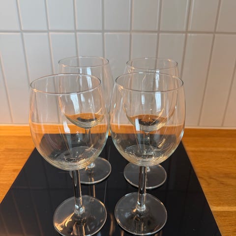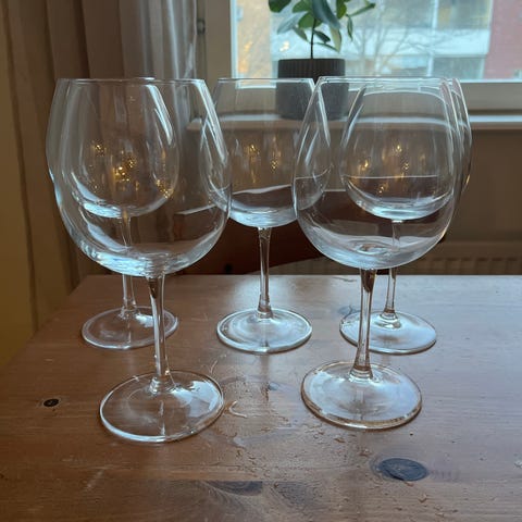 Isot punaviinilasit 4kpl. Korkeus 22,5cm, suun halkaisija 8cm. Kuvassa vähän pölyisinä. Myydään settinä.