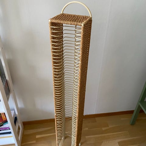 Annetaan 6 kpl vaaleansinisiä pahvisia säilytystelineitä. Valmistettu alunperin DVD/ Blu-ray -levyille.