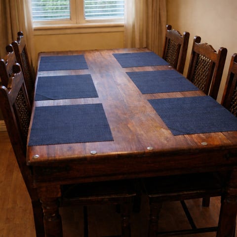 Neljä hyväkuntoista tuolia ja kaupan päälle kulunut pöytä.