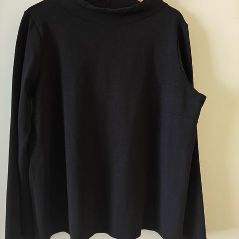 Nanso Viiru naisten paita. Koko XL. Materiaali 95 % viskoosia ja 5 % elastaania, ohut trikoo. Väriltään raidallinen, mustavalkoinen. Pitkähihainen malli, pyöreä pääntie, helma kaareva sivusaumoihin päin (kuva) . Mitat: kai-kai 58 cm, pituus olkapäältä helmaan 86 cm. Savuton koti, ei kotieläimiä.