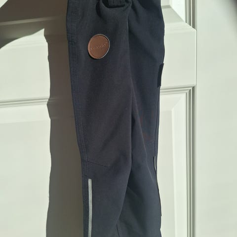 Lasten vk ulkohousut, koko 100cm. Väri musta, unisex-malli. Housuissa on joustava kuminauhavyötärö ja toisessa lahkeessa heijastinnauha.