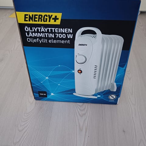 Öljytäytteinen siirrettävä lämmitin, väriltään musta. Laitteessa on säätönupit lämpötilan ja tehon säätöön sekä merkkivalo. Lämmitin on varustettu pyörillä. Soveltuu lisälämmönlähteeksi sisätiloihin, tai esimerkiksi kellariin, talliin tai työhuoneeseen. Vikavirtasuojattu. Teho 1500W/240V.