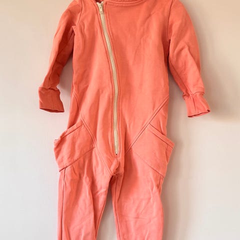 Gugguun punainen jumpsuit koossa 110. Hyvä käytetty kunto, aavistuksen väri haalistunut.