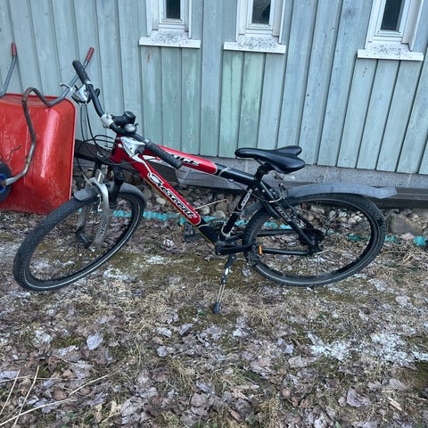 Myydään pieneksi jäänyt White 26” maastopyörä jousitetulla keulalla ja hydraulisilla jarruilla. (Ei ns jalkajarrua). Pyörä on ollut käytöllä koulumatkoihin ja toiminut hyvin. Uusi takavaihtajan osa vaihdettu entisen annettua periksi kaverin kopsautettua siihen koulun pihalla. Vaihdeindikaattori ei toimi. Mukaan talvirengas. Vain nouto