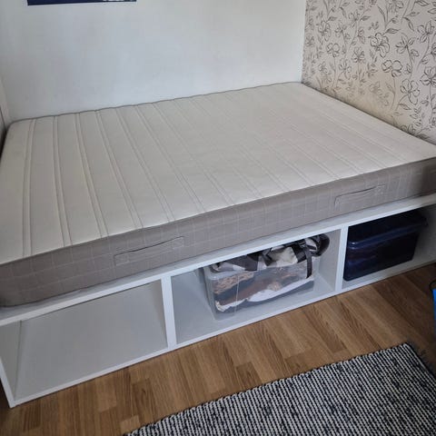 140cm petauspatja. Patjassa käytön jälkeä (läiskiä yms). En ole kokeillut pestä, voi olla että lähtee pesussa pois.