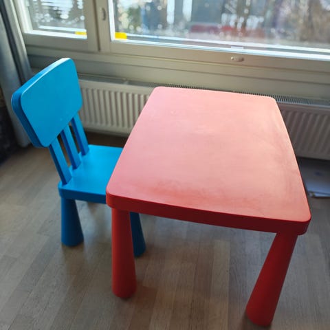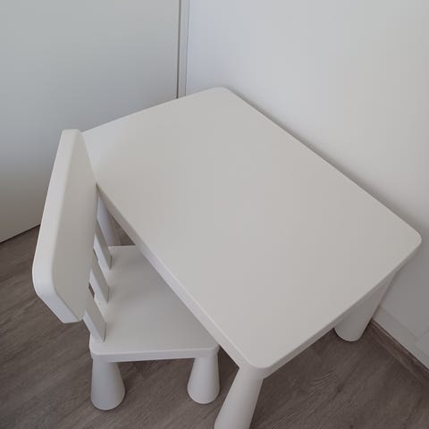 IKEA Mammut lastentuoli, värinä valkoinen. Oli meillä hetken (muutaman kuukauden) varatuolina, mutta enää tälle ei ole tarvetta. Tuoli on uudenveroinen.