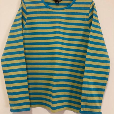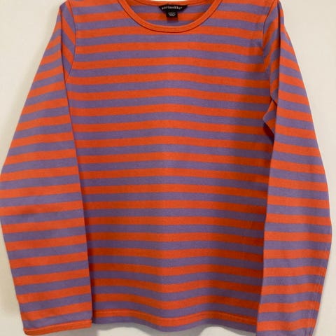 Myydään Marimekon lasten pitkähihainen puuvillapaita, koko 128. Puna-valkoraidallinen raitapaita. Uusi, laput kiinni.