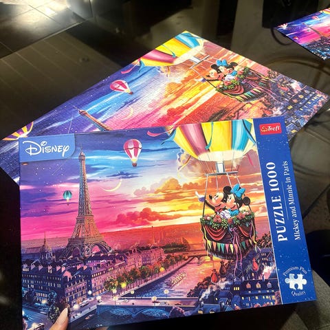 Myynnissä Helsingin Viikissä uusi (=sinetöintiteipit avaamatta) Ravensburger Disney Mickey Moments 1970 -palapeli, jossa on 1000 palaa. Palapelissä on Disney Mickey Mouse -aiheinen kuvitus, joka esittää erilaisia Mikkiin liittyviä esineitä ja kuvia.