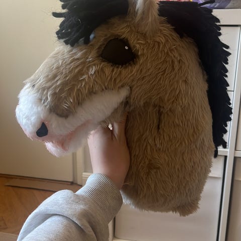 Voikko, kestävästi käsin ommeltu keppihevonen anatomisilla suitsilla. Keppihevosen kangas velboaa ja suitset kaksinkertaista tekonahkaa. Suitset realistiset ja yksityiskohtaiset. Tukevasti kiinnitetty keppi kuluu mukaan.
