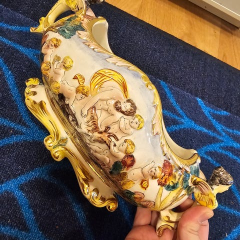 Italiassa valmistettu posliinikoira (cockerspanieli). Pieni kolhu hännän päässä, kts. viimeinen kuva.