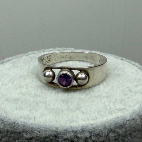 Vintage Suomi Hopea 925H Sormus Vaaleanpunaisella Kvartsilla Erik Granit 1970