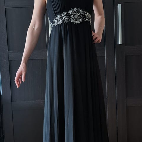 Musta pitkä juhlamekko. Koko 38, In Stock mallisto.Sisältää huivin. Käytetty kerran vanhojen tansseissa.