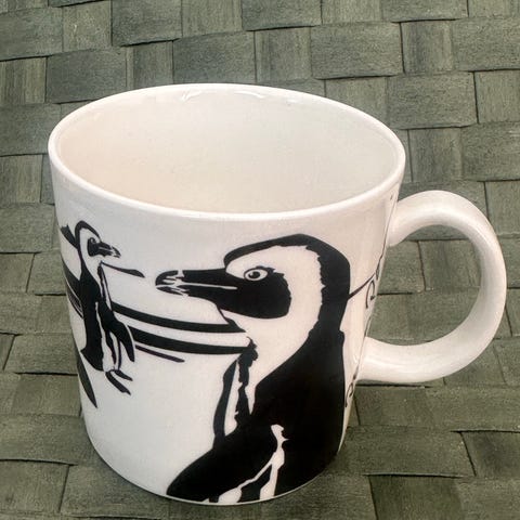 Arabia Oiva Toikka Linnut muki. Yksi 1-2mm kokoinen tumma piste, joka ollut uudesta asti.