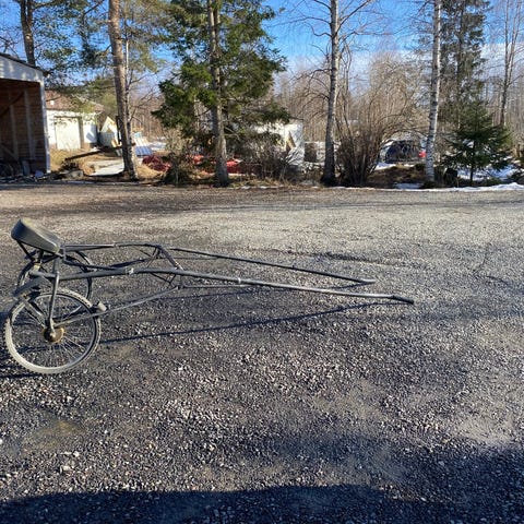 Ehyet ja käyttökelpoiset Gustom Multiflex kilpakärryt ilman renkaita, aisan pituus 193cm