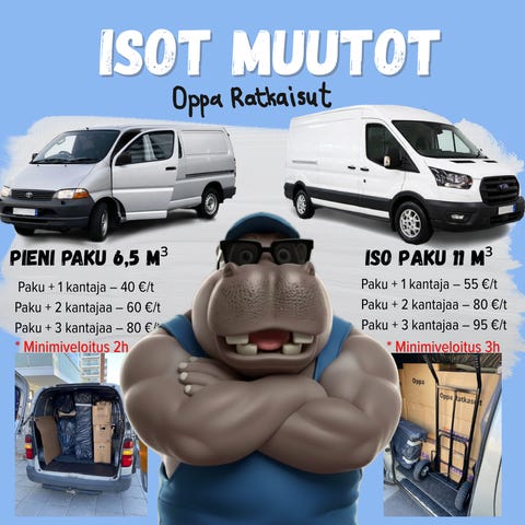 ✅ Suuret ja pienet muutot – kokonaispalvelu pakettiautolla ja kantajilla