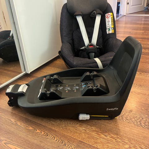 Maxi-Cosi turvaistuin 67-105cm max 18kg. Telakka mukaan. Voidaan asentaa myös selkä menosuuntaan. Istuimessa on viisipistevaljaat ja tukijalka, jotka näkyvät kuvissa. Kiinnitys tapahtuu auton isofix-kiinnikkeisiin. Istuimen väri on tumma. Istuimessa on säädettävä selkänoja ja pehmustettu istuinosa. Kaikki näkyvät yksityiskohdat ja mahdolliset käytön jäljet ilmenevät kuvista. Pesu jää ostajalle.