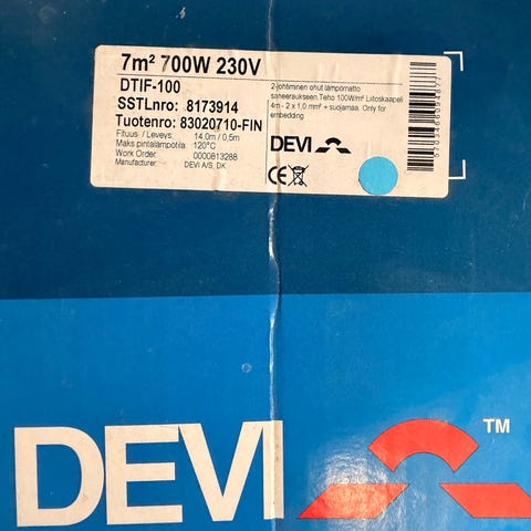 Lattialämmitys matto Devimat 100t 2m²