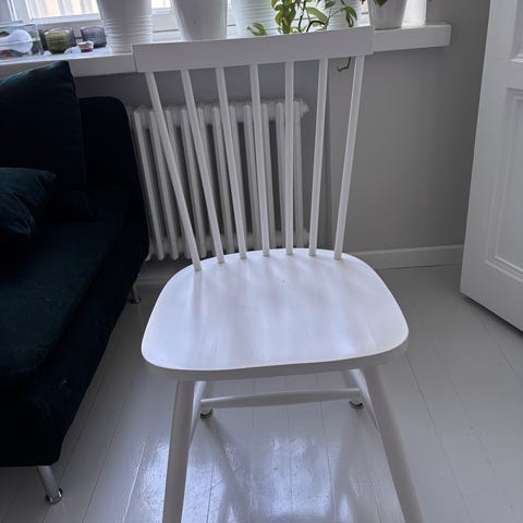 5kpl valkoisia pinnatuoleja. Tuolit ehjät, paitsi yhdestä tuolista selkänoja hieman irti, mutta tämänkin saa varmasti korjattua. Hinta kaikista tuoleista yhteensä.