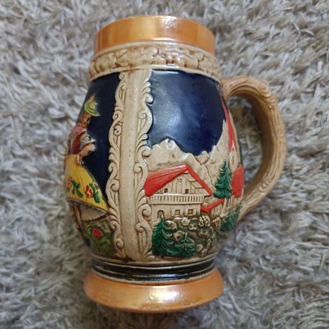 Tuoppi kahvalla. Kirkas. Made in England. Korkeus 12cm. Nouto/postitus.