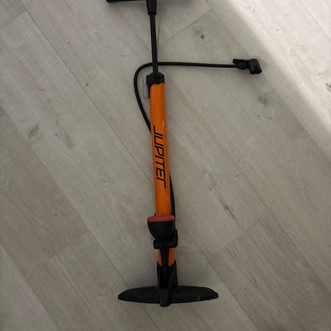 Hyväkuntoinen USB-C -ladattava pyöräpumppu. Olen ladannut akun noin kymmenen kertaa. Mukaan myös metallirasia jonka hankin erikseen.