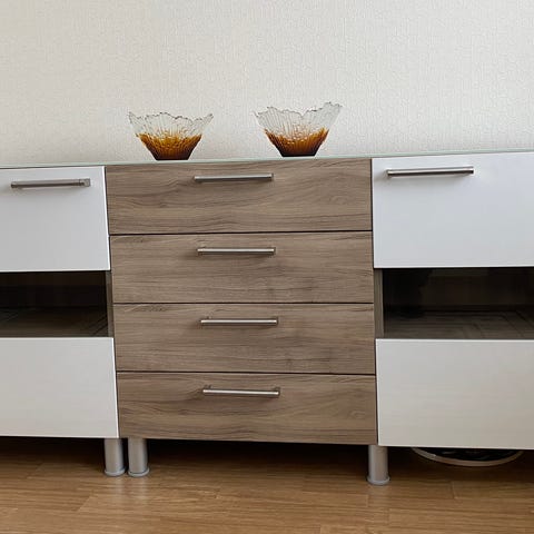 Olohuoneen säilytyskalustekokonaisuus musta lasiovilla