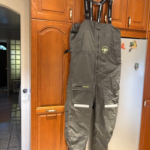 Koko noin S/36/3 Vanha ja paljon käytetty. Ei pika vettä enää kuin uutena. Henri Lloyd TP purjehdushaalarit aikuiselle. Kaksiosainen haalariasu, jossa henkselilliset housut ja takki. Väri musta-harmaa, takissa huomiovärinen huppu. Materiaalina tekninen, säänkestävä kangas. Heijastavia yksityiskohtia ja useita taskuja, mm. läpällinen reisitasku housuissa. Soveltuu purjehdukseen ja muuhun vesillä liikkumiseen.