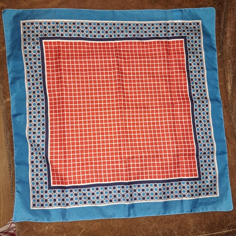 Pääväriltään punainen ohut hieman sifonkimainen tekokuituhuivi, oletettavasti polyesteriä. Ehjä, päärmeet siistit. Kuvissa pesun jäljiltä, ei silitetty. Olisko 80- tai 90-luvulta. Koko 75x75 cm, eli kokoa riittää monimutkaisempiinkin solmuihin! Katso myös muut kohteeni.