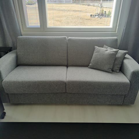 hyvä kuntoinen vuodesohva säilytyslaatikoilla. sohva pituus noin 270cm, syvyys noin 155cm divaani osan kohdalta ja korkeus noin 85cm. vuodesohvan vuodeosan koko avattuna on 180cmx200cm.