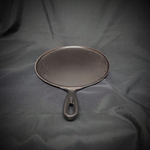 Käytettu grillipannu 30 cm. Kuvien sävyeroista huolimatta kuvat ovat samasta kohteesta ja pannun väri on voimakkaan punainen. On kookas ja painaa melkein 4 kiloa, joten ei ehkä paras vaihtoehto yksin elävälle, ellei nyt sitten syö huomattavia määriä kerrallaan, sopivampi siis hieman suuremman seurueen ruoanlaittoon, lämmöt eivät nitkahda kun laittaa hieman enemmän tavaraa tulemaan.