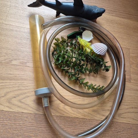 Ja vähän laatikossa litistynyt muovikasvi akvaarion somisteeksi.
