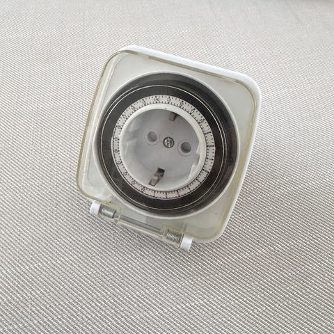Greenpower ajastimella varustettu ulkopistorasia. Laitteessa on useita pistorasioita ja mekaaninen ajastin, jonka avulla sähkölaitteiden käyttöaikaa voidaan säätää. Soveltuu esimerkiksi puutarhan tai pihan sähkölaitteiden, kuten valaistuksen tai pumppujen, ajastettuun käyttöön ulkokäytössä.