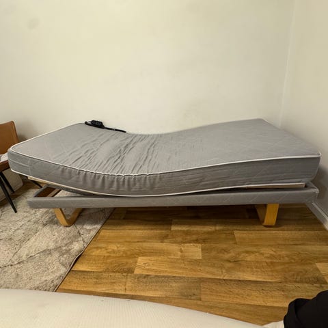 Selling a comfortable motorized bed with adjustable head and leg positions, perfect for relaxing, reading, or improving sleep comfort.