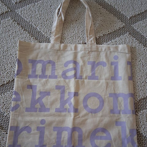 Uusi Marimekon logokassi korallin värisillä kirjaimilla, hp 18€, nouto Lauttasaaresta tai voi omien menojen mukaan kulkeutua myös muualle Helsinkiin/Espooseen