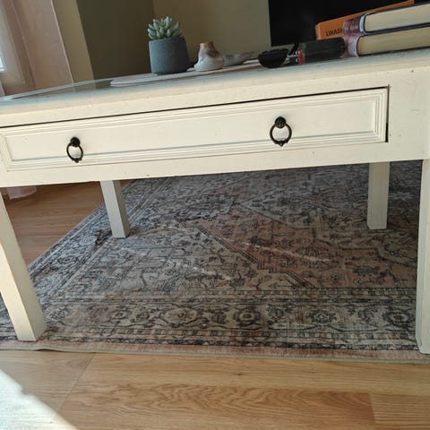 Ellokselta ostettu käytännössä uusi ruskea sohvapöytä. Ollut käytössä vain pari viikkoa ja sitten säilössä. Ei sopinutkaan kokonaisuuteen.