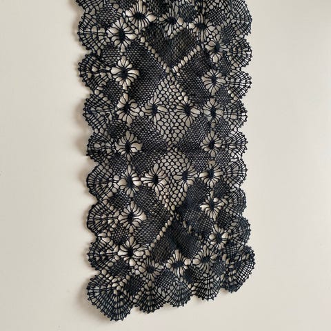 Käsin nyplätty sininen pitsiliina
