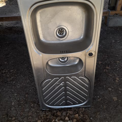 Ruostumattomasta teräksestä valmistettu tiskiallas, jossa yksi suuri allas ja yksi pienempi apuallas sekä valutustaso. Allas on asennettuna työtasoon. Sopii keittiöön tai kodinhoitotilaan astioiden pesuun ja huuhteluun sekä yleiseen vesipistekäyttöön.