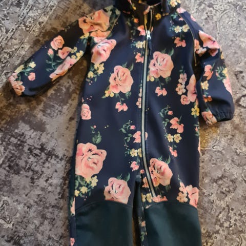 Lassien sininen raidallinen softshell-haalari seuraavalle pienelle ulkoilijalle koossa 92cm. Kunto hyvä, pientä normaalia kulumaa polvissa ja pepun kohdalla. Irrotettava huppu.