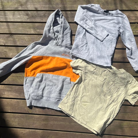 4 Hupparia (ylärivi), 4 pitkähihaisia, 2 T-paitaa ja yksi hihaton paita, 2 mustat collegehousut. Hyvässä kunnossa.