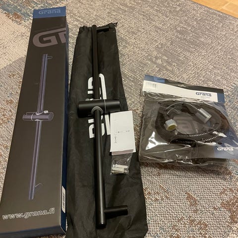 Suihkutuoli ja seinään kiinnitettävät tukikaiteet