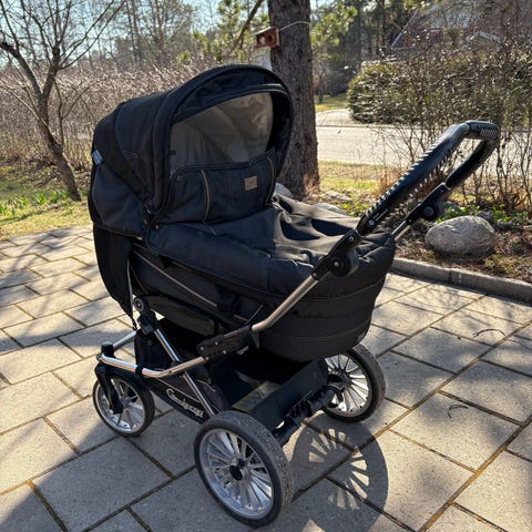 Erittäin siistissä kunnossa olevat ja hyvin palvelleet harmaat Emmaljungat. Ratasosa ja vaunukoppa sekä molempiin omat erilliset suojapeitteet, jolloin ratasosankin saa hyvin suojatuksi kylmältä ja tuulelta.