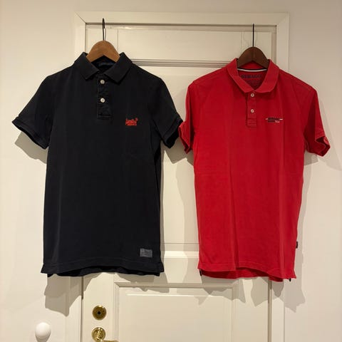 Tummansininen pikeepaita ja kirkkaan sininen t-paita. Merkki Winson, ainakin Citymarket myy tätä.