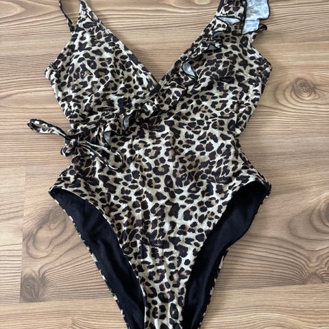 Käyttämätön uimapuku, avoin selkä. Kokonaispituus 74 cm.