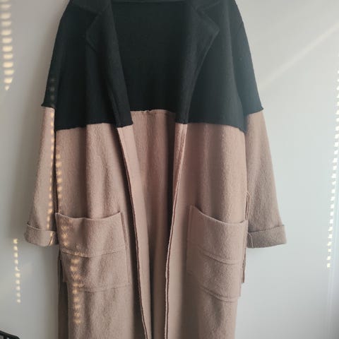 Hyväkuntoinen villakangastakki (Frankie Coat). Koko M. Oversize-malli. Materiaali villaa 32% ja alpakkaa 68%. Väri punainen. 4 nepparinappia. Taskut sivuilla. Nouto tai postitus.