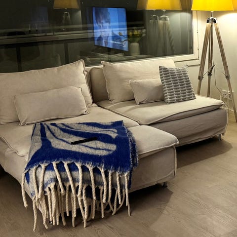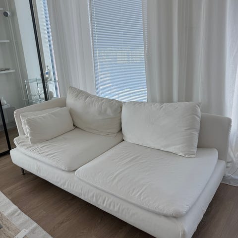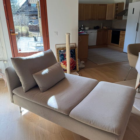 Ihana divaani käsinojalla, uuden vastaavan hinta 450€.