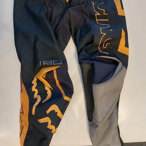 Fox ajohousut, koko 30. Väri harmaa. Meillä ollut crossikäytössä kun pituutta pojalla ollut n.170-(175max)