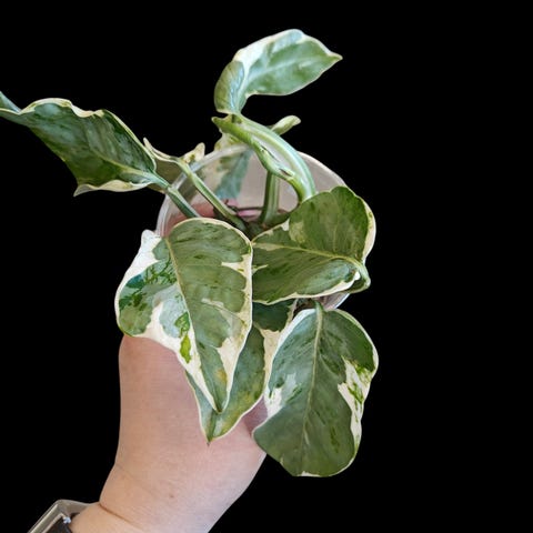 Jo juurrutuksessa oleva pistokas, useampi lehti pistokkaassa.